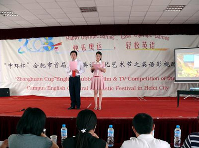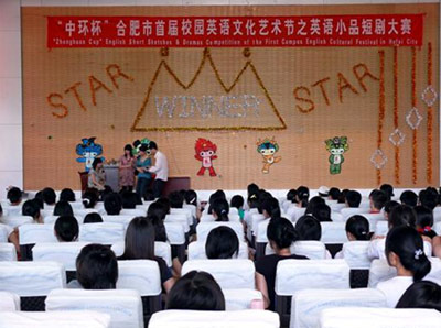为深入贯彻落实党的十七大和市委九届五次全会精神,丰富我市大、中学生文化生活,营造积极向上、健康文明的英语文化和迎奥运氛围,发掘学生潜力,培养学生兴趣,全面推进素质教育,在全市青年学生中营造“快乐奥运,轻松英语”的浓厚氛围,5月31日,在北京奥运会即将举办之际,团市委、市学联正式启动了“中环杯”合肥市首届校园英语文化艺术节比赛阶段各项活动。